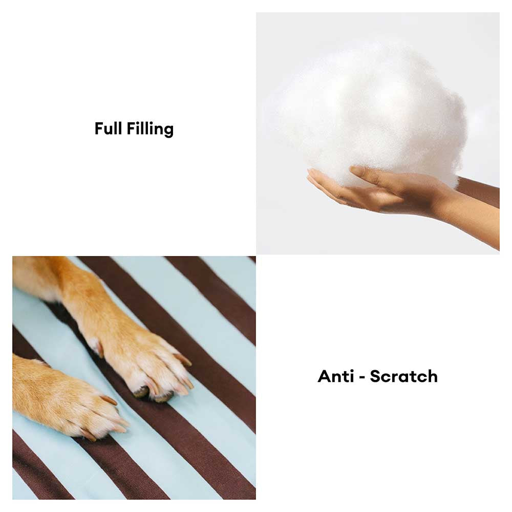 - Stabilità Antiscivolo: La base antiscivolo garantisce che il letto rimanga saldamente in posizione, anche durante quei sogni pieni di movimenti o momenti di gioia con la coda scodinzolante.