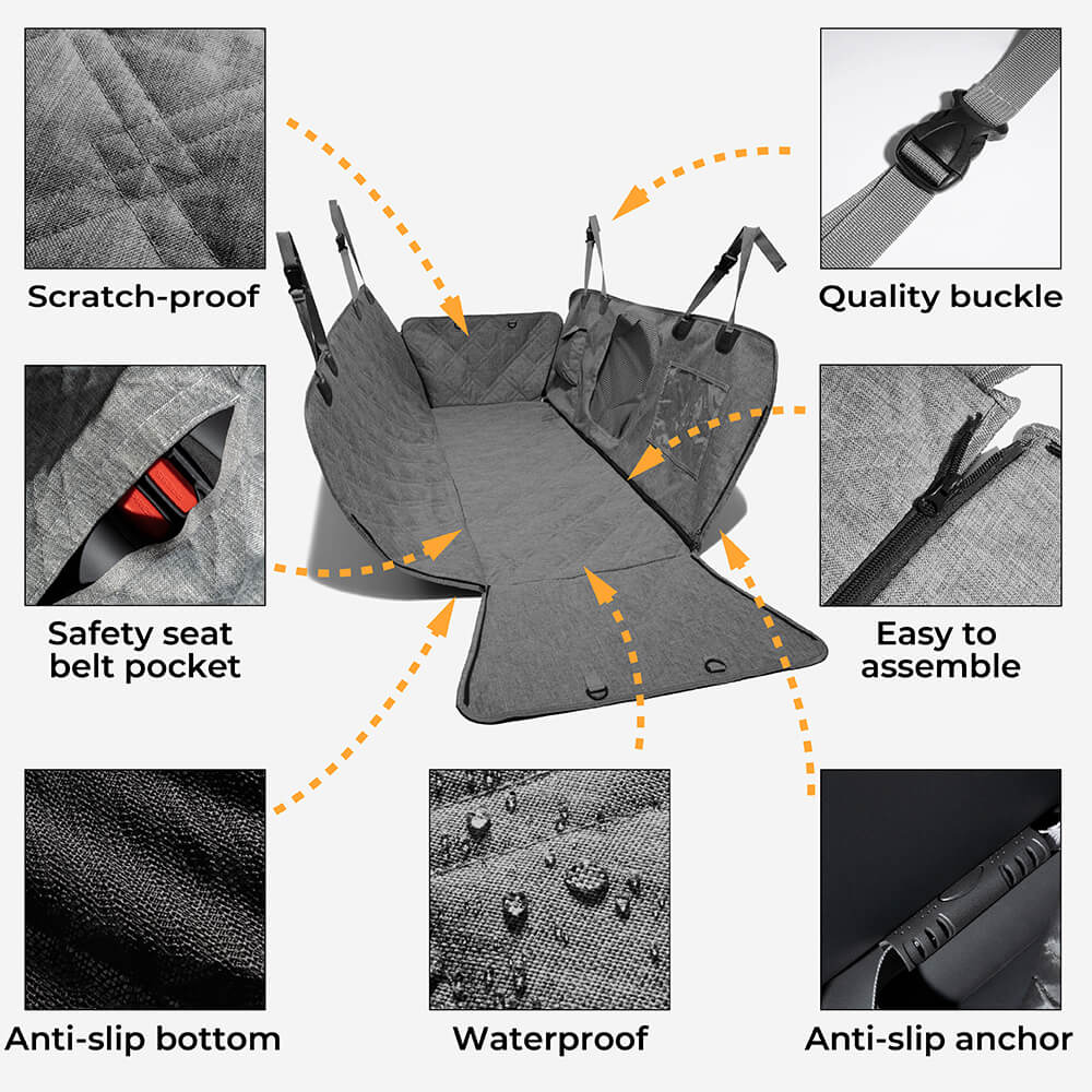 Copertura per seggiolino auto per cani in tessuto ossford cationico impermeabile e resistente ai graffi.