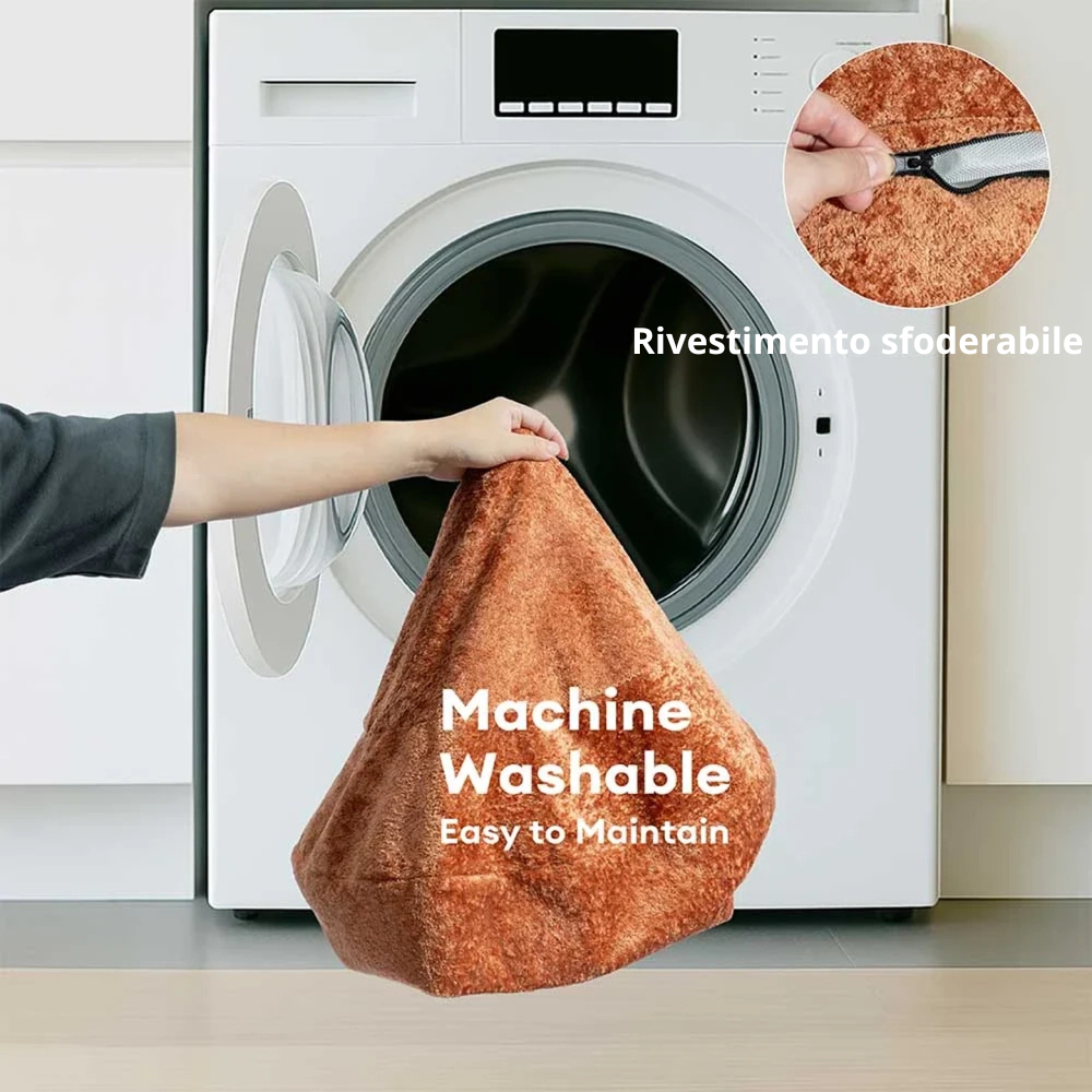 - Sfoderabile e Lavabile in Lavatrice: la fodera con zip si rimuove facilmente, permettendo una pulizia rapida e mantenendo il letto fresco e invitante con il minimo sforzo.
