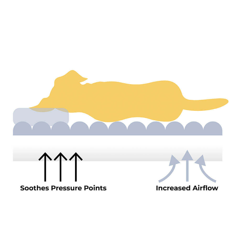 - Support orthopédique : La base est composée d'une mousse alvéolée haute densité qui répartit uniformément le poids de votre chien, offrant un soutien optimal et soulageant la pression sur les articulations, le cou et la colonne vertébrale. Votre animal de compagnie profitera d'un sommeil douillet, ce qui contribuera à sa santé et à son bonheur.